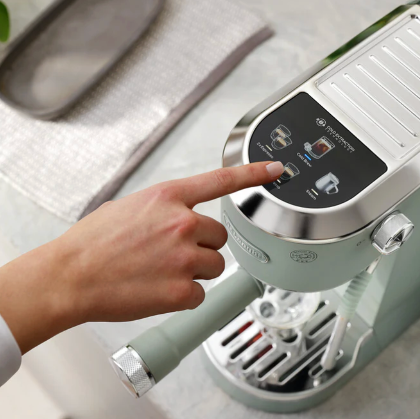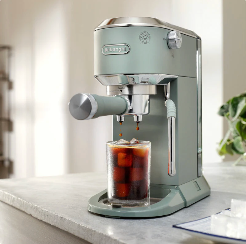 Domina el arte del espresso, el cappuccino y otras bebidas a base de leche y café en casa con Dedica Duo. Disfruta de un café caliente y frío, incluida la exclusiva receta Cold Brew, y dale a tus bebidas ese toque de barista con la varilla My LatteArt. Esta cafetera compacta se adapta a cualquier espacio, añadiendo a tu cocina un estilo italiano de forma sencilla.