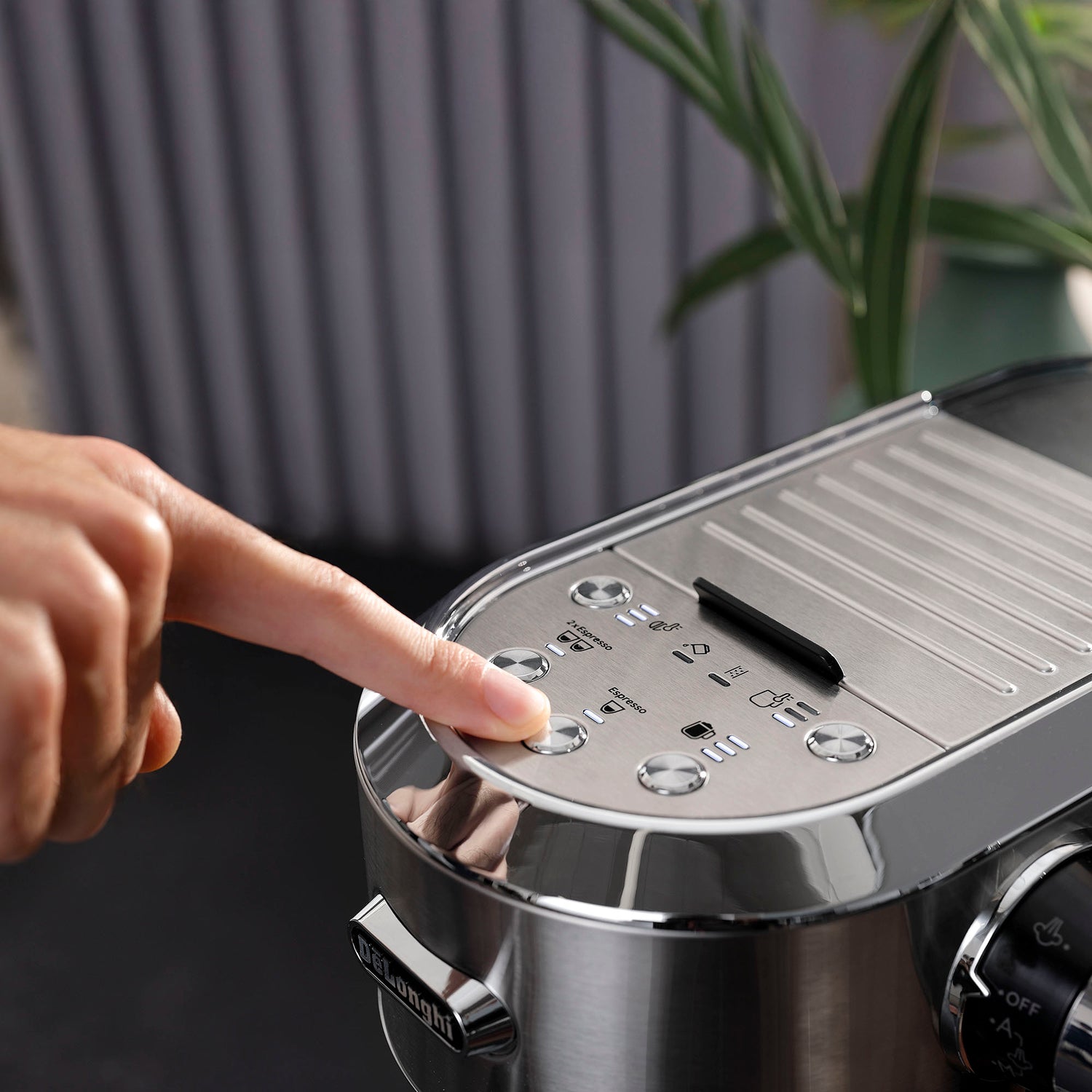 Dedica, con su diseño único y minimalista, aporta sin esfuerzo un toque de elegante estilo a tu cocina. Las dimensiones aumentadas, que ofrecen más espacio para una cómoda disposición del usuario, se complementan con su perfil elegante y aerodinámico. El sensor automático de temperatura facilita la elección de la temperatura más adecuada para la bebida y el tipo de leche.