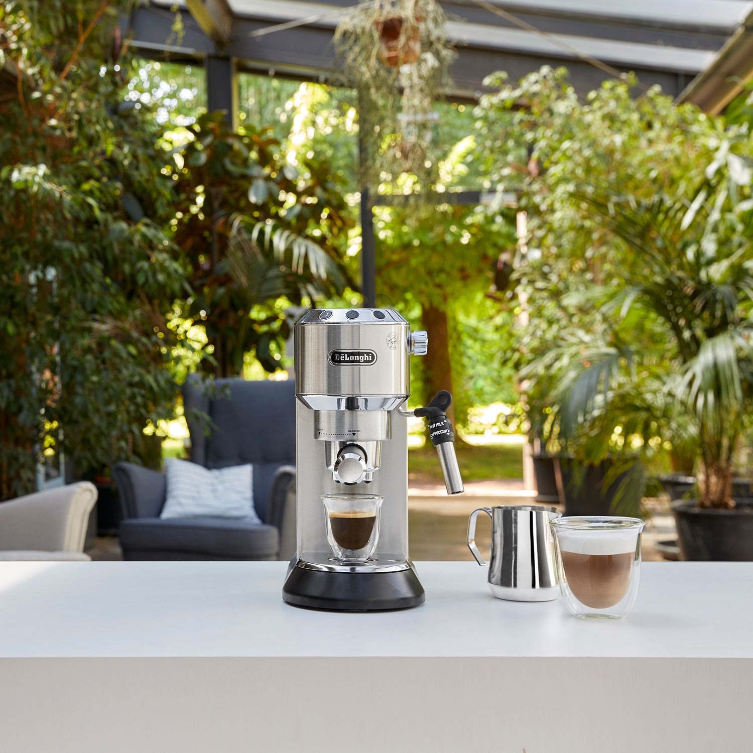 ¡Vive la experiencia barista completa en casa! Muele tus granos de café al instante con nuestro molinillo Dedica y prepara el espresso perfetto en segundos con la cafetera Dedica Style. El portafiltros del molinillo se ajusta con precisión a la cafetera. Además, texturiza la leche y disfruta de tus propias creaciones en casa.